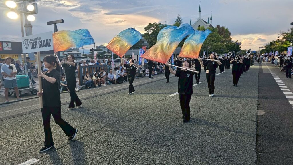 上期活動報告③ 2025年12月31日 最終更新日時 : 2025年12月31日 もも 今年も様々なイベントに出演させていただきました🎺✨ 【竹田西部幼稚園 夏まつり】 元気な子どもたちの笑顔に私たちもパワーをいただきました!☺️ 竹田西部幼稚園のみなさんは、山形県大会にも参加されています🥁 来年も山形県大会でお会いできるのを楽しみにしております🎺✨ 【天童花笠祭り】 今年も天童夏まつりパレードに参加させていただきました🌻 地域の方々に私たちの活動を知っていただく素敵な機会に感謝しております🙇🏼♀️ インスタ等でも私たちの活動を発信していますので、ぜひご覧ください(^^♪ Follow me!